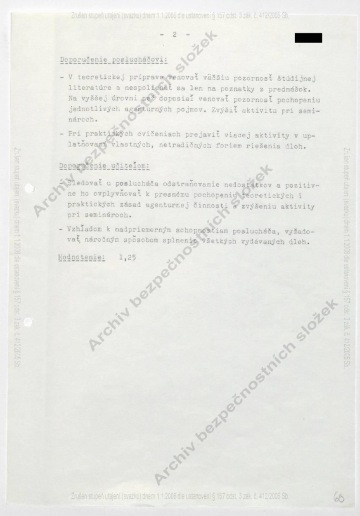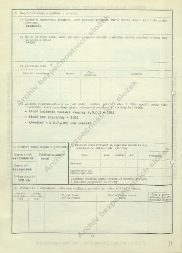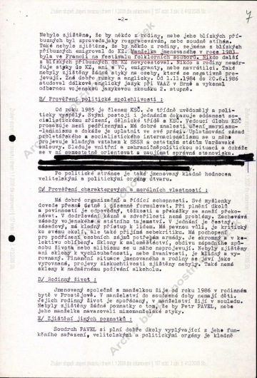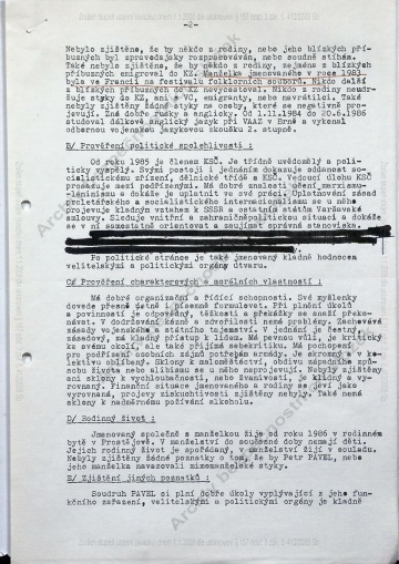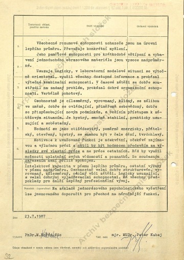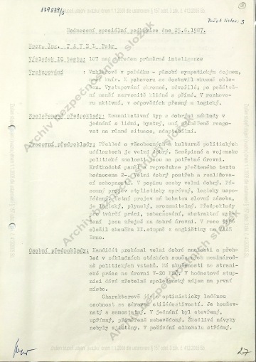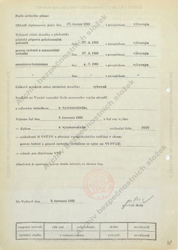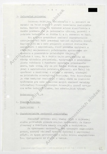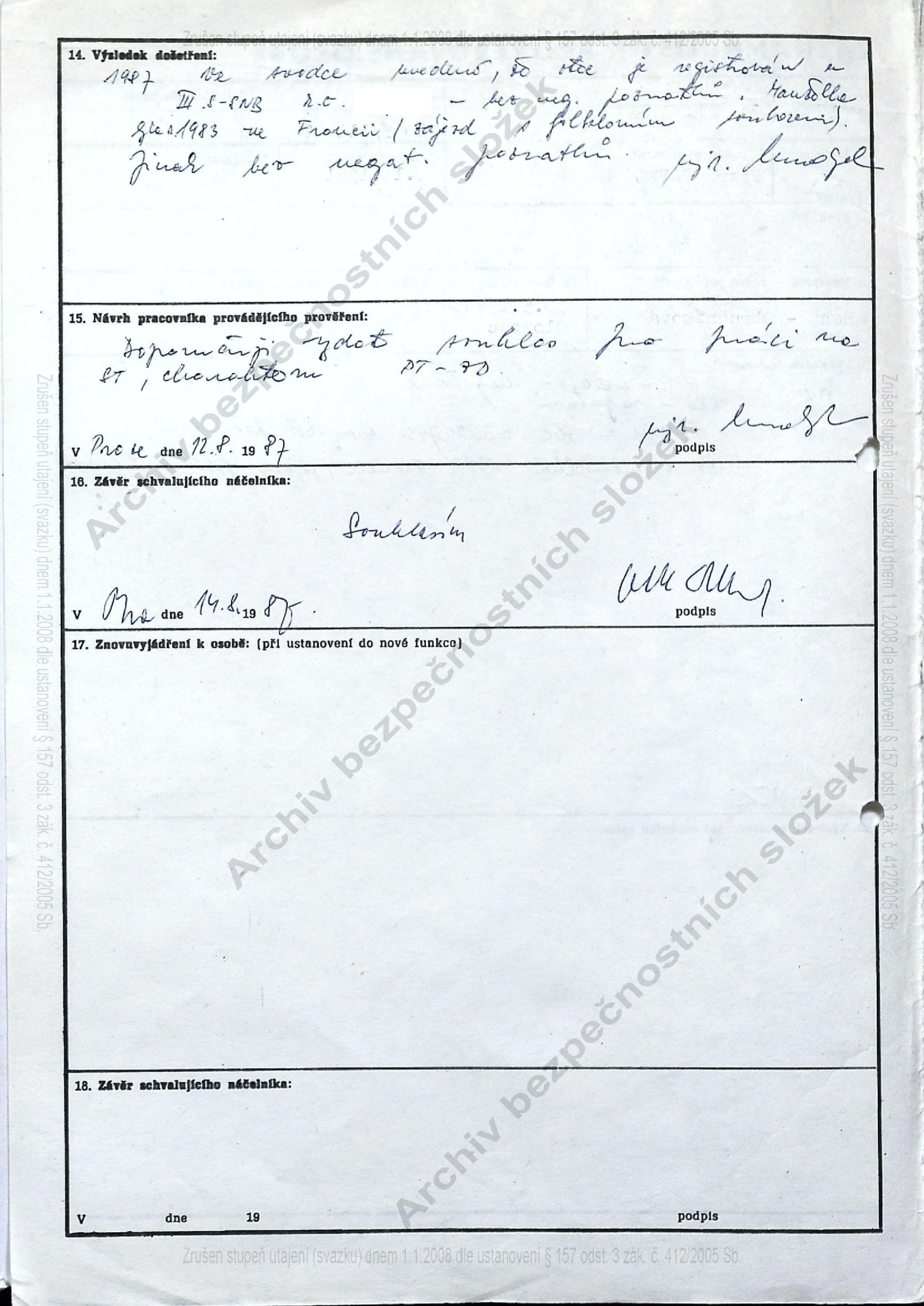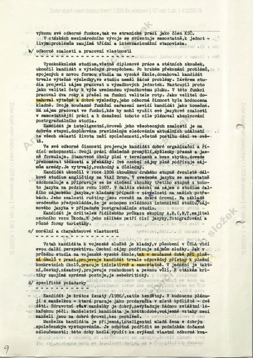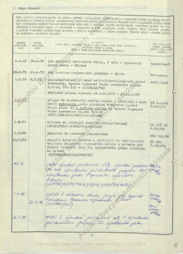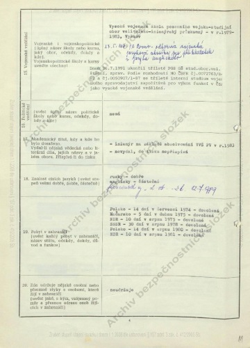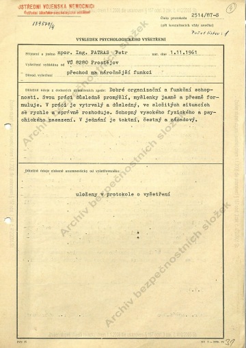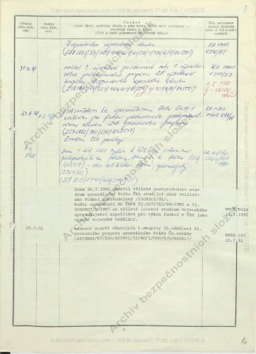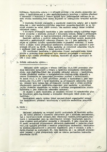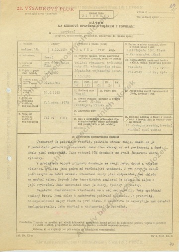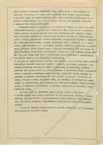 Obsahuje i formulace týkající se „třídně-poltického“ profilu. Naprosto totožné, či jen mírně obměněné ideologické fráze obsahují prakticky všechny osobní spisy důstojníků před listopadem 1989.