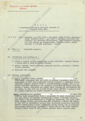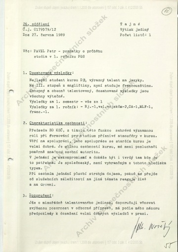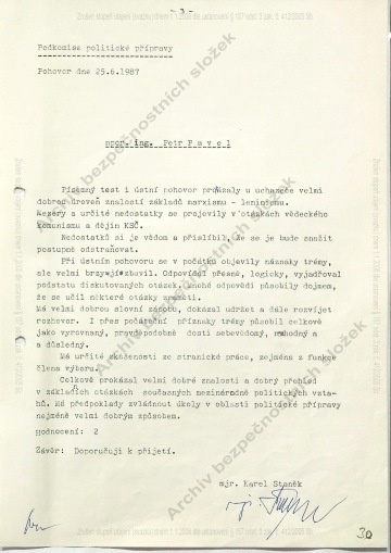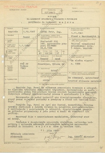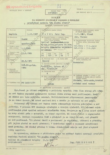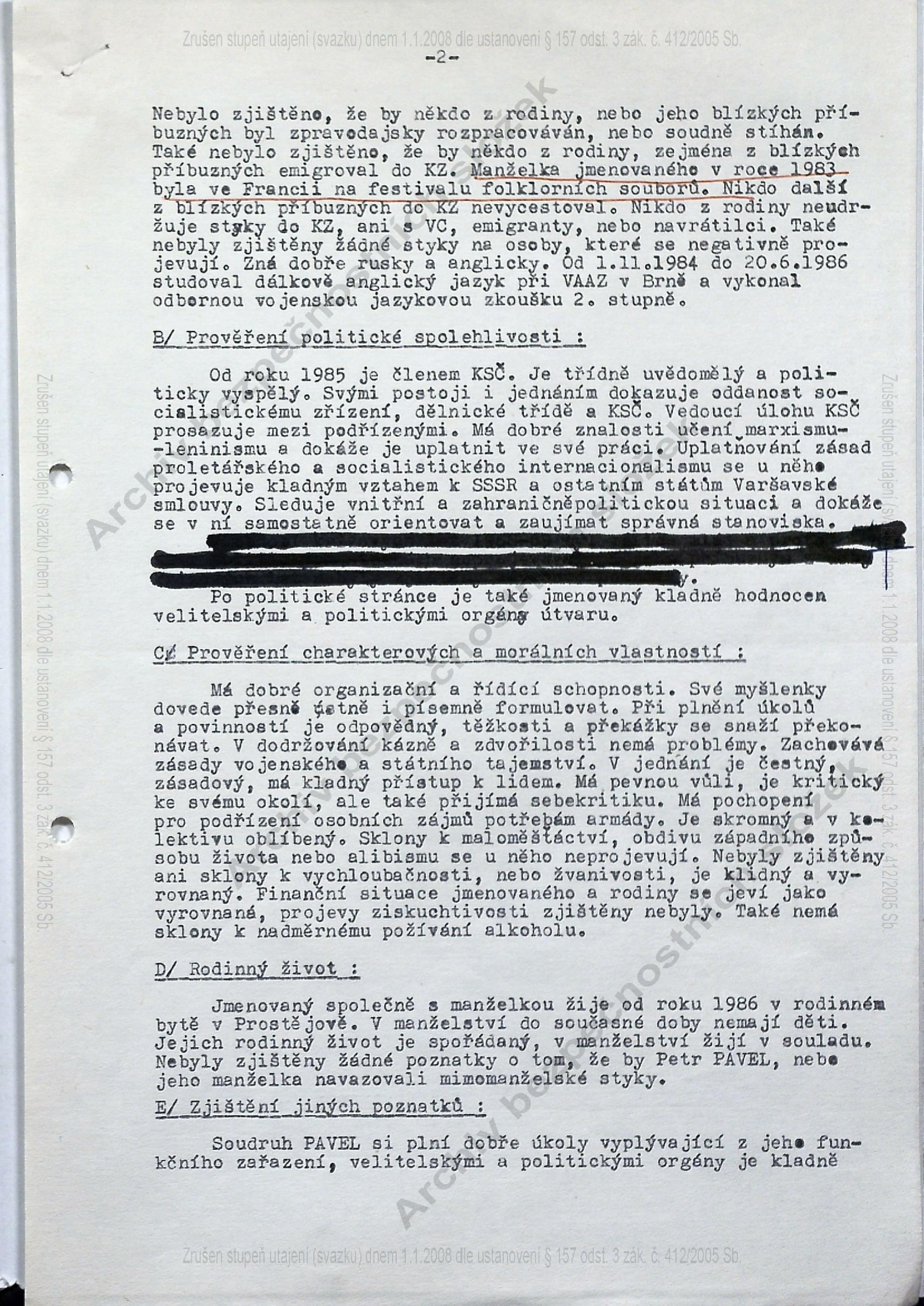 „Pokud by personální hodnocení vojáka z povolání tehdy takovéto formulace neobsahovalo, byl by hodnotitel upozorněn, aby je doplnil, protože bez nich je nebylo možné odevzdat nadřízenému, ani je založit do osobního spisu. V personální dokumentaci Petra Pavla není nic, co by dokazovalo jeho nadstandardní oddanost vůči komunistickému zřízení či ideologii.“