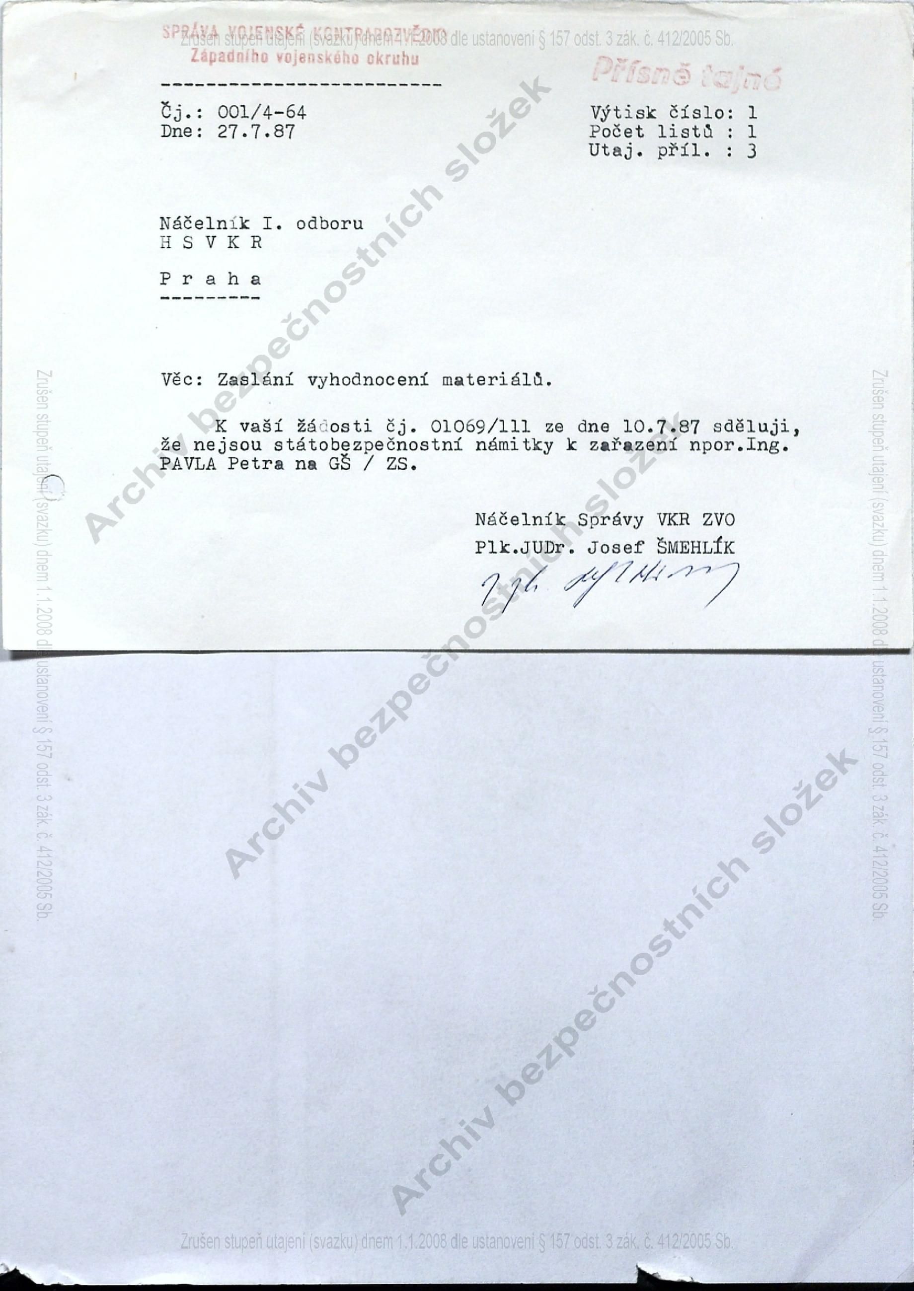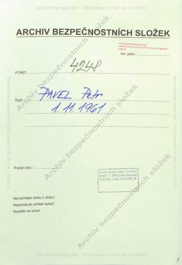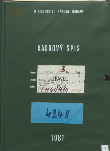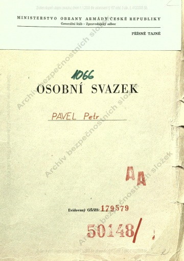 V Archivu bezpečnostních složek (ABS – součást Ústavu pro studium totalitních režimů, pečuje o archiválie bezpečnostních složek z období komunistické moci) jsou uloženy 3 soubory dokumentů, které se týkají tehdejší vojenské služby Petra Pavla: standardní osobní spis vojáka z povolání (KP-4248 V), osobní svazek vedený Zpravodajskou správou Generálního štábu (50 148) a Záznamní list k prověřované osobě pro styk se státním tajemstvím (B-949-5).