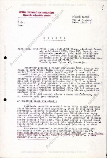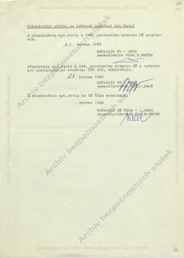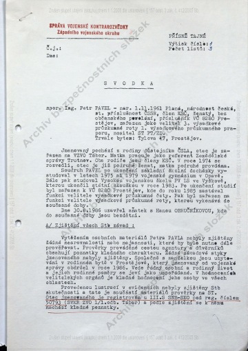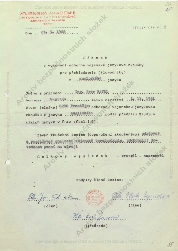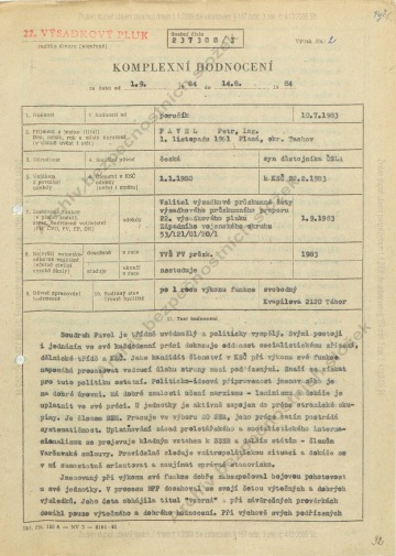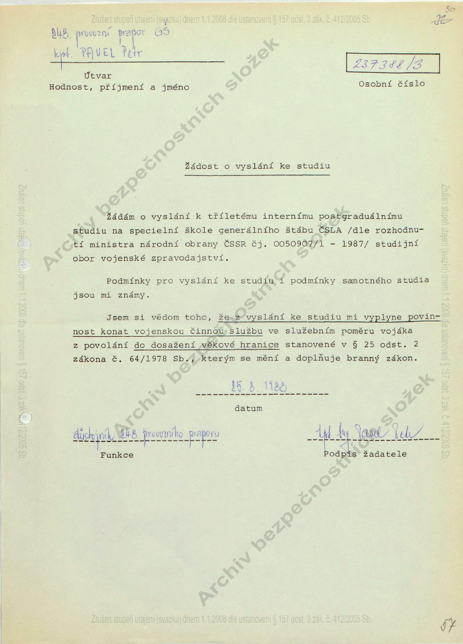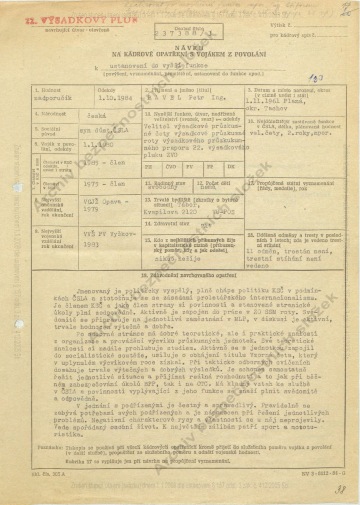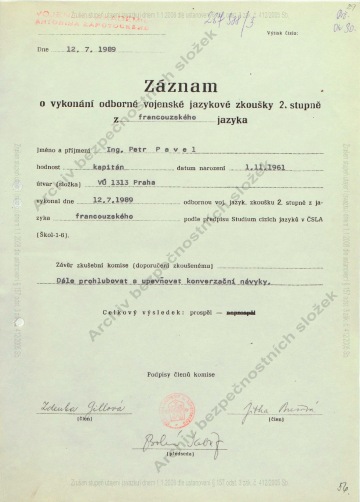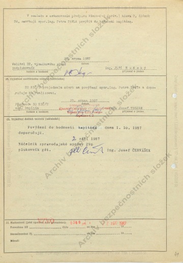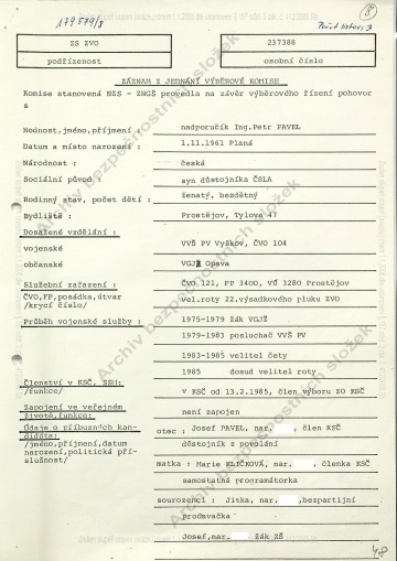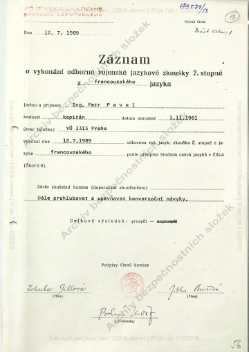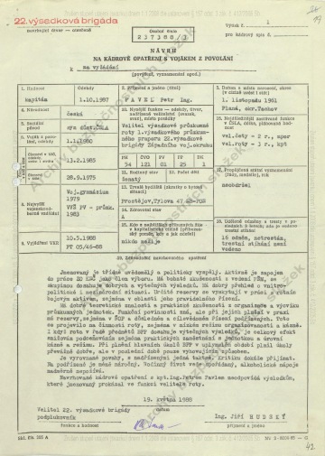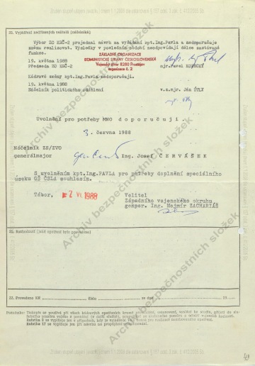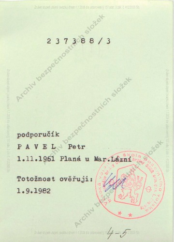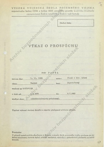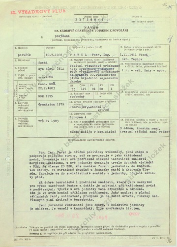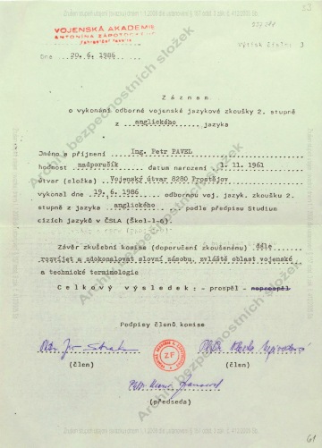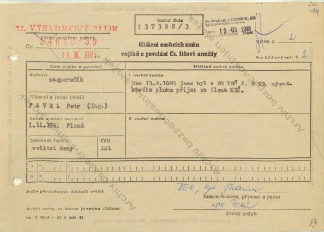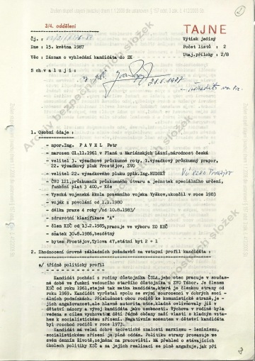 Pozn: Podporučík Petr Pavel podal přihlášku do KSČ v únoru 1983, členem byl od února 1985 do listopadu 1989.