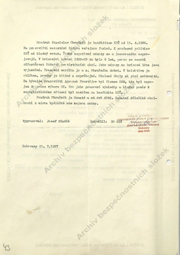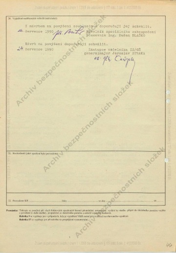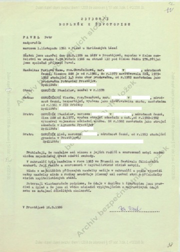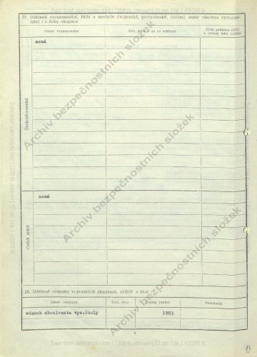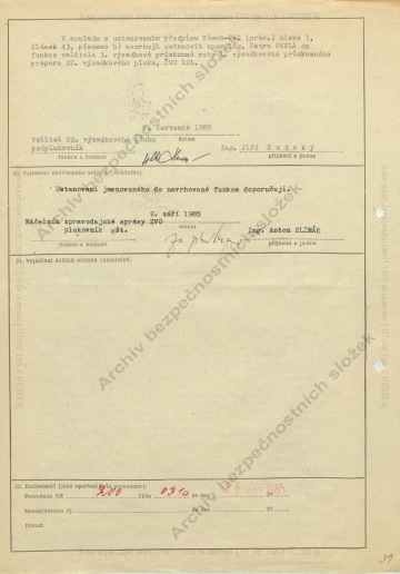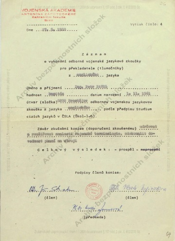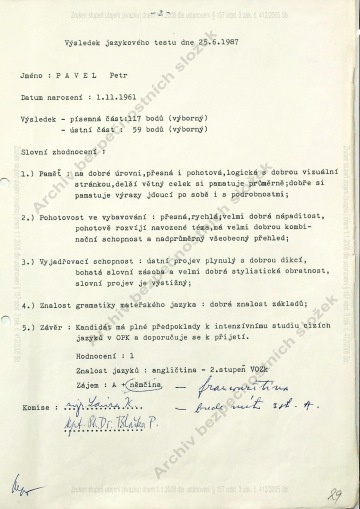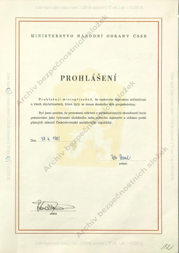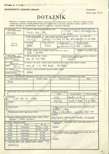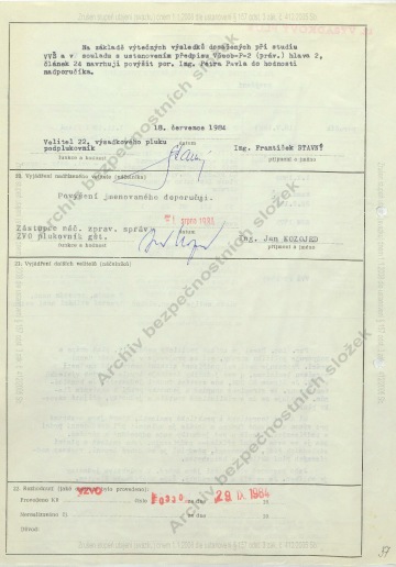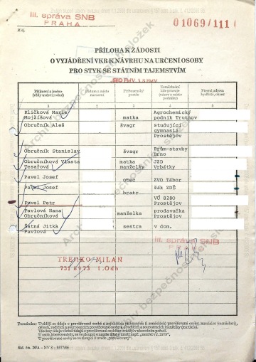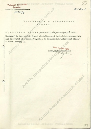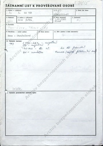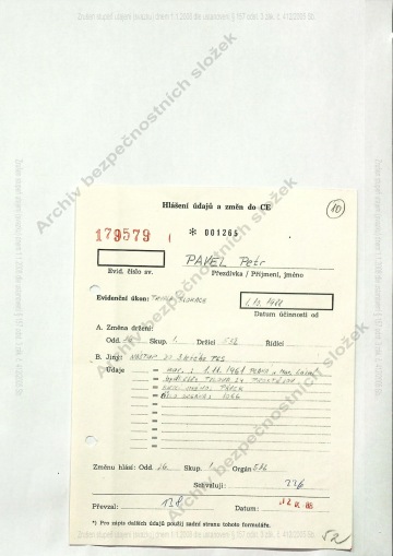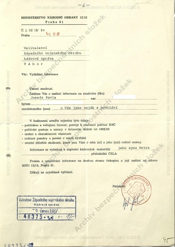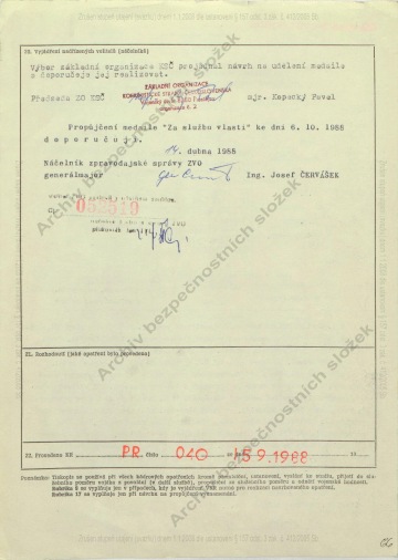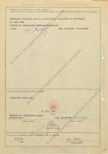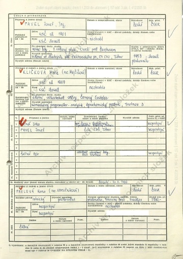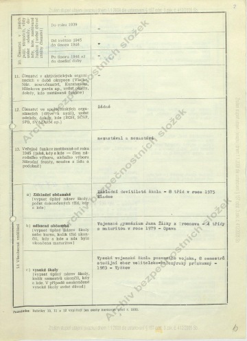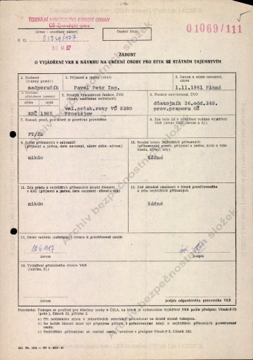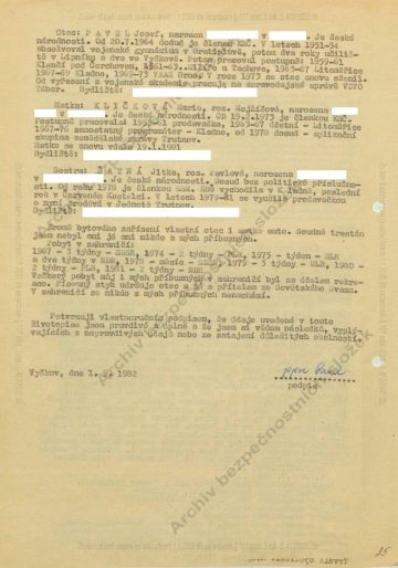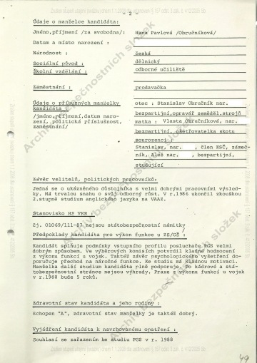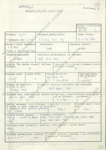 Pozn: Podporučík Petr Pavel podal přihlášku do KSČ v únoru 1983, členem byl od února 1985 do listopadu 1989.