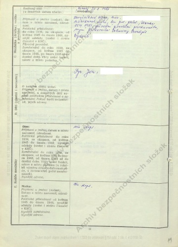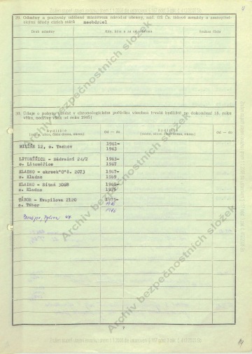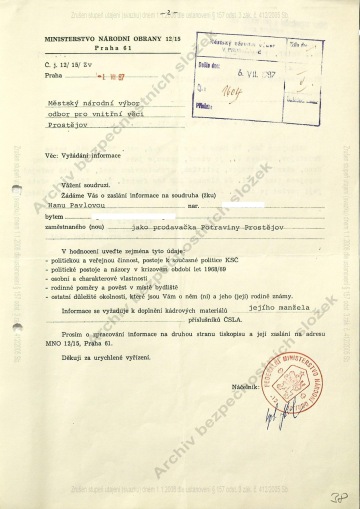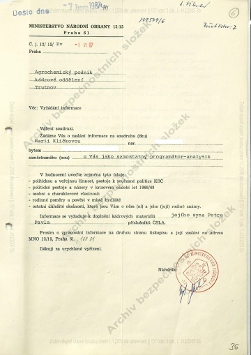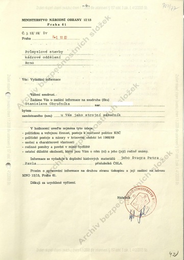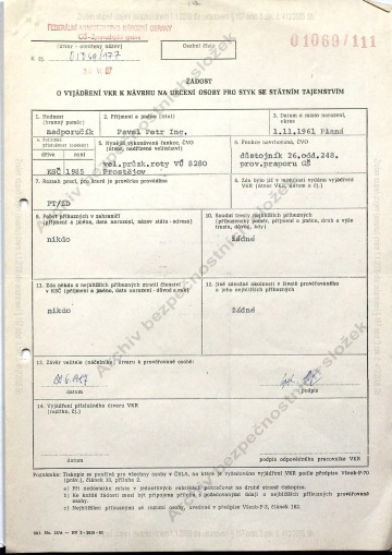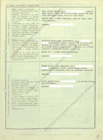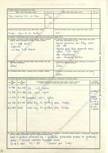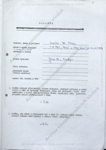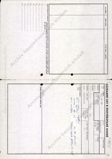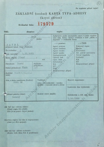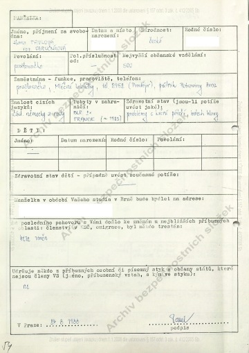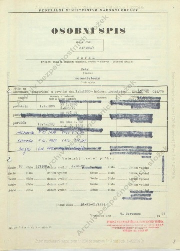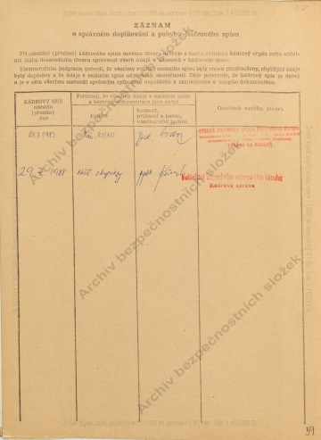 Personální dokumentace uložená v Archivu bezpečnostních složek
