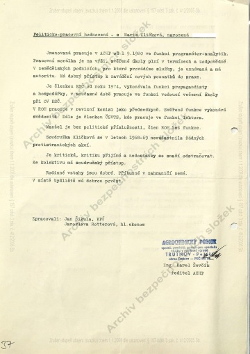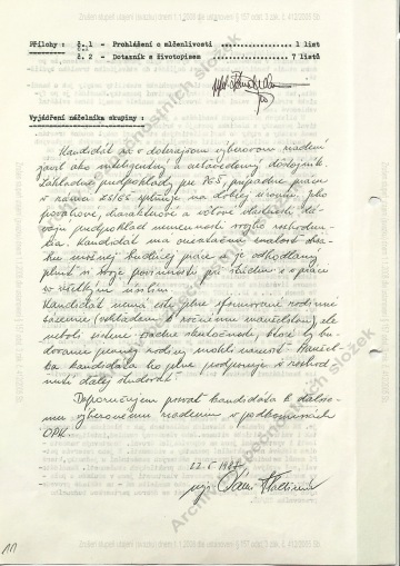 Dokumenty obsahují základní personální dotazníky, životopisy, hodnocení nadřízených, vysvědčení z absolvovaných kursů nebo potvrzení o složených zkouškách. (Světle znečitelněné jsou osobní údaje nezúčastněných osob v souladu s ochranou osobních údajů, tmavě znečitelněné byly již dokumenty v ABS.)